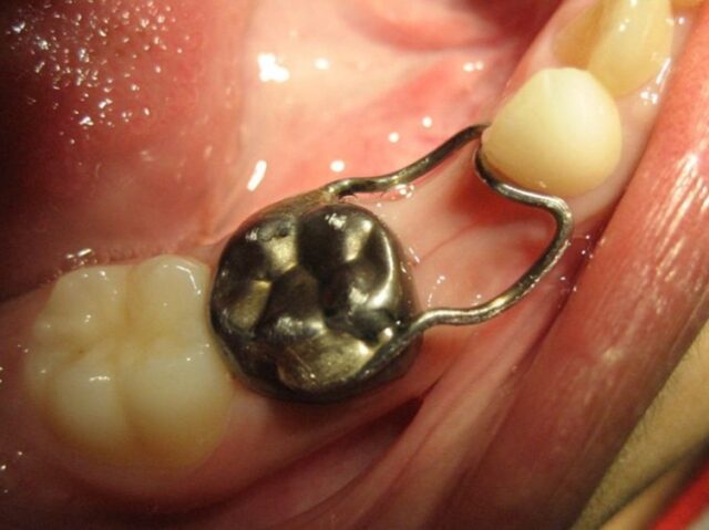 Được chế tạo bao gồm một vòng nhẫn quanh răng và một vòng dây tròn kéo dài ra ngoài để giữ khoảng trống. Dùng để đặt trên một răng của một bên cung hàm.