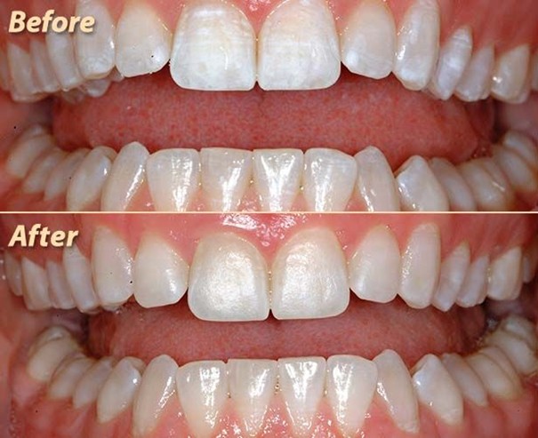 Hay thông dụng hơn ở các case niềng răng, ở các trường hợp vừa tháo bỏ mắc cài chỉnh nha sẽ xuất hiện các các đốm trắng rõ rệt như hình sau đây, sẽ rất hiệu quả và bảo tồn mô răng khi sử dụng phương án nhựa thẩm thấu này.